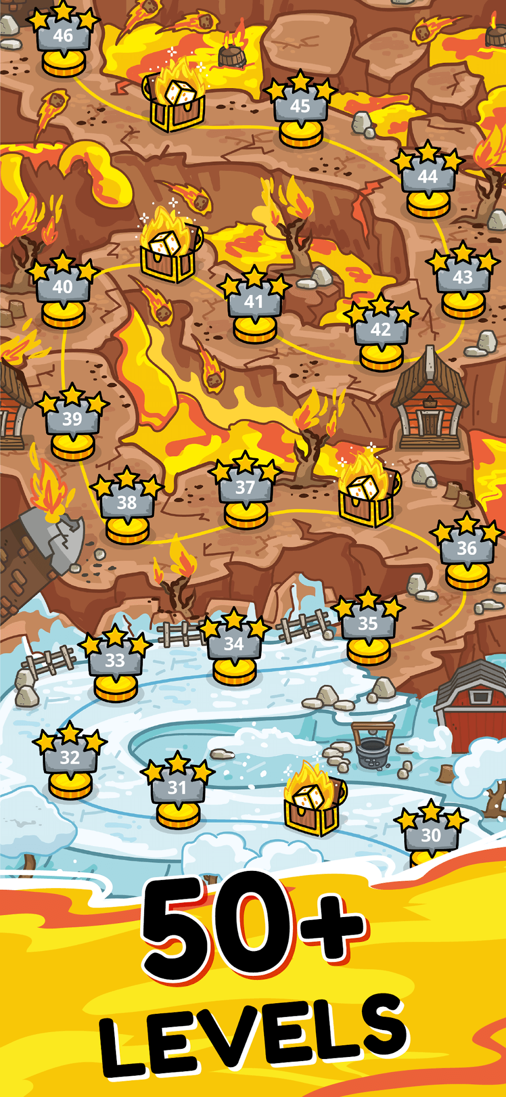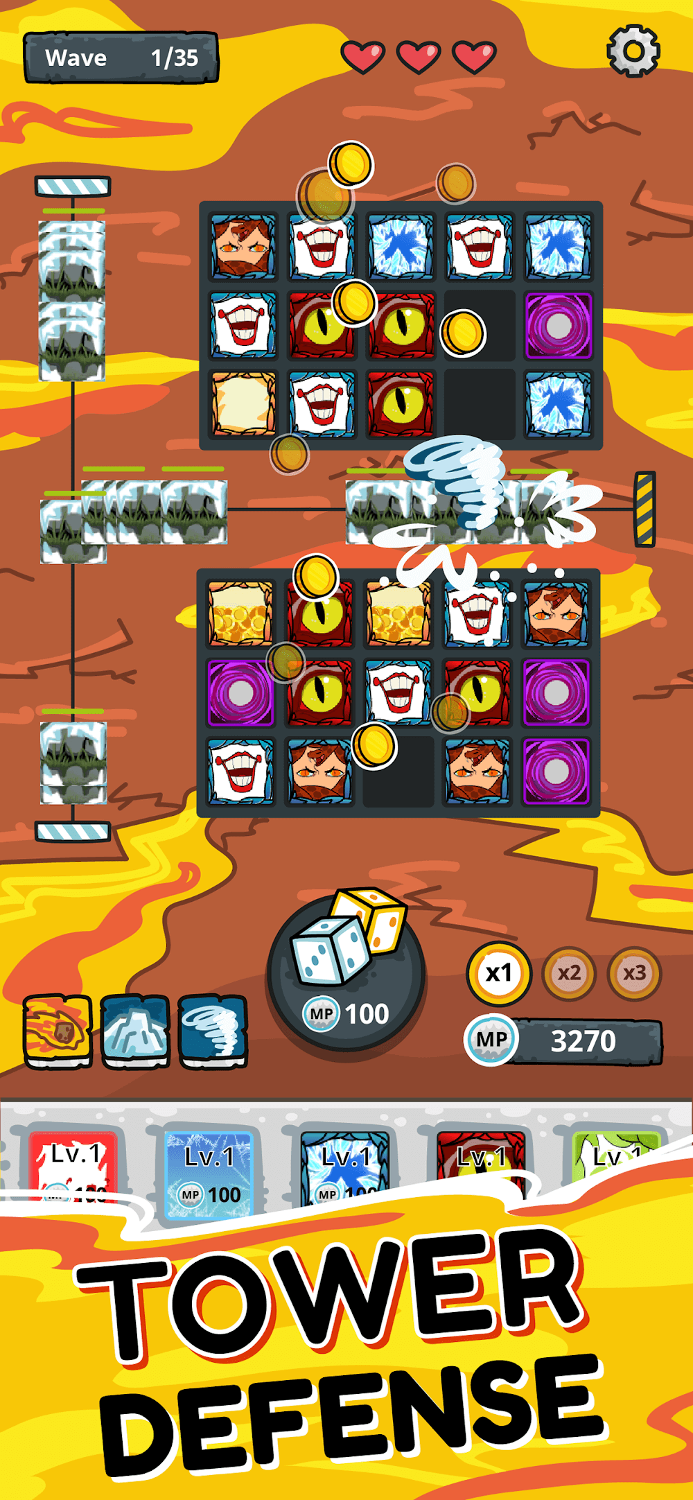 Completing a level in this tower defense game can earn you up to three stars if you’re good enough. Your royal dice and spells have the potential to undergo irreversible upgrades if you collect enough stars. New dice will show up in your progression, and they are unique, as you can merge identical dice to upgrade their stats and produce more powerful dice. Depending on your situation, you can locate the dice to the suitable position or upgrade their traits to improve the effectiveness in the battle.