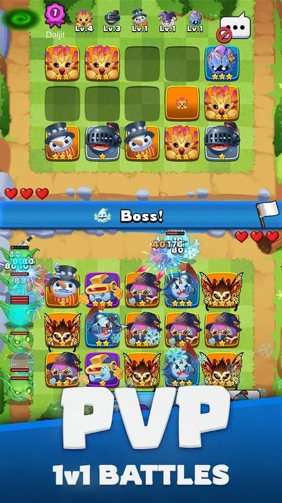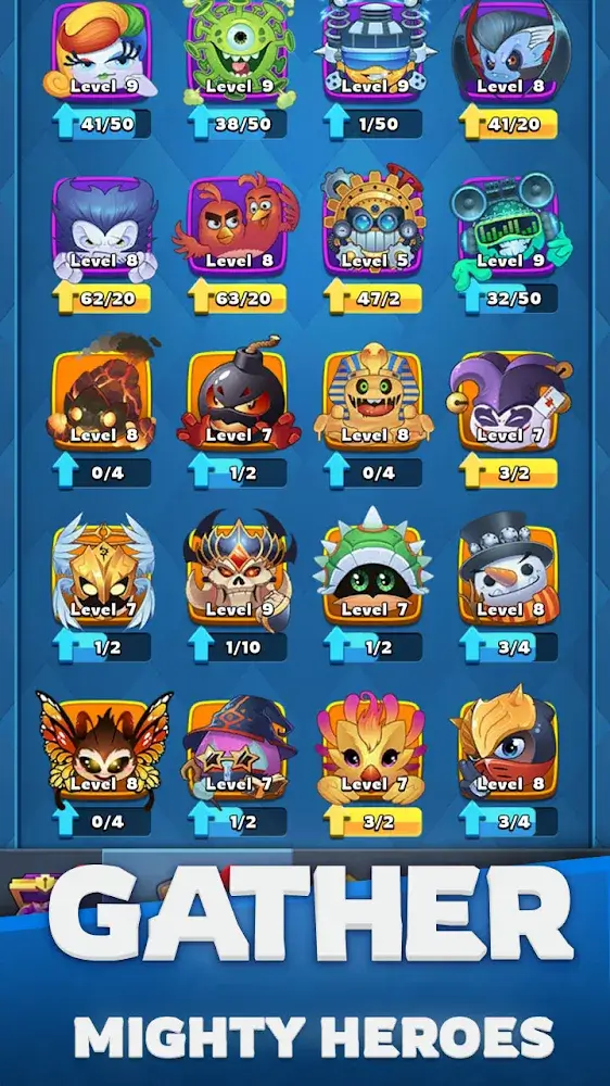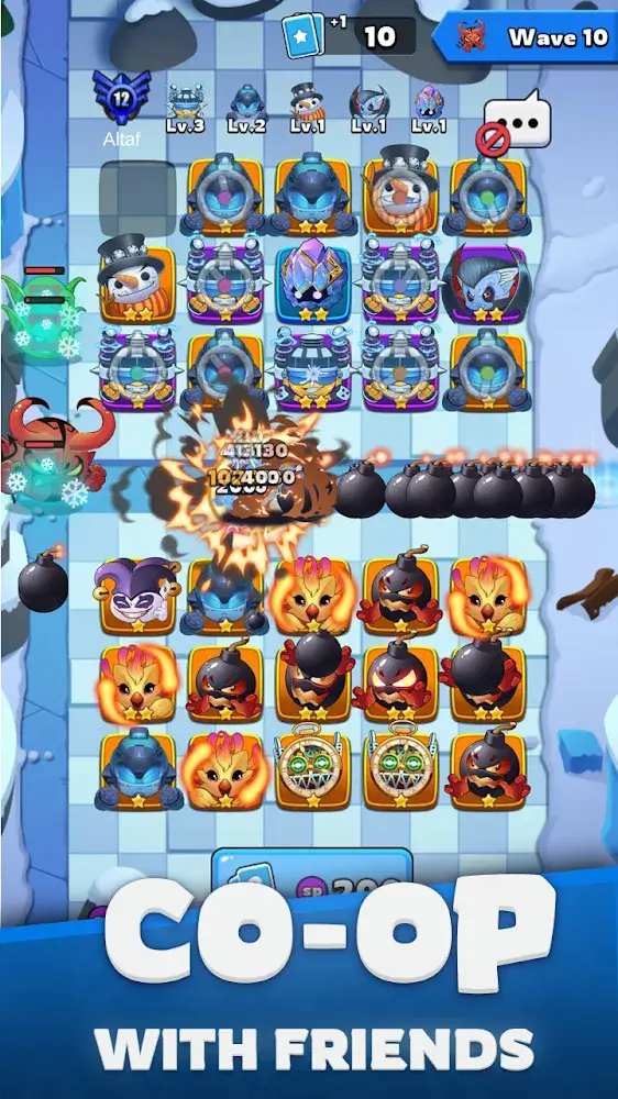 Players will own a series of heroes with different attack abilities, and each hero has unique characteristics. Players can gather all the heroes together and perform specific divisions of work. Each hero will stand in any one of the sets of empty cells, and the player will be able to swap the heroes’ positions. Players also need to know how to arrange heroes so that the ability to destroy is pushed to the highest.