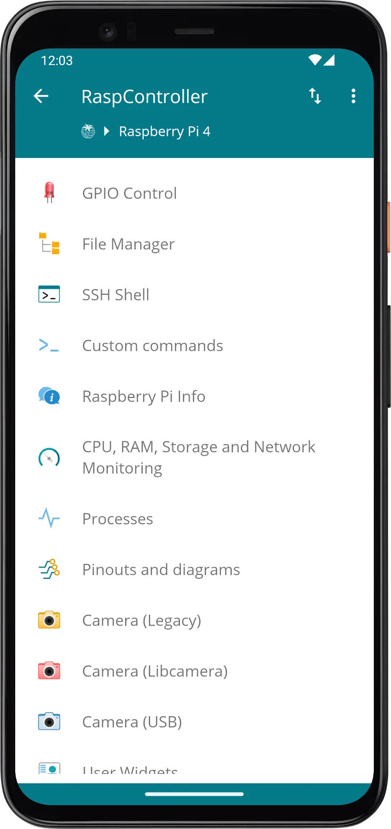 RaspController is an extremely useful application for you. The application will give you a controller so that you can easily manage Raspberry Pi remotely. With this application, you can manage files, control GPIO ports, send commands directly through the terminal, view images from connected cameras, get data from different sensors, and many other optimal features that bring you the smartest convenience. What are you waiting for? Come to the application right away.
