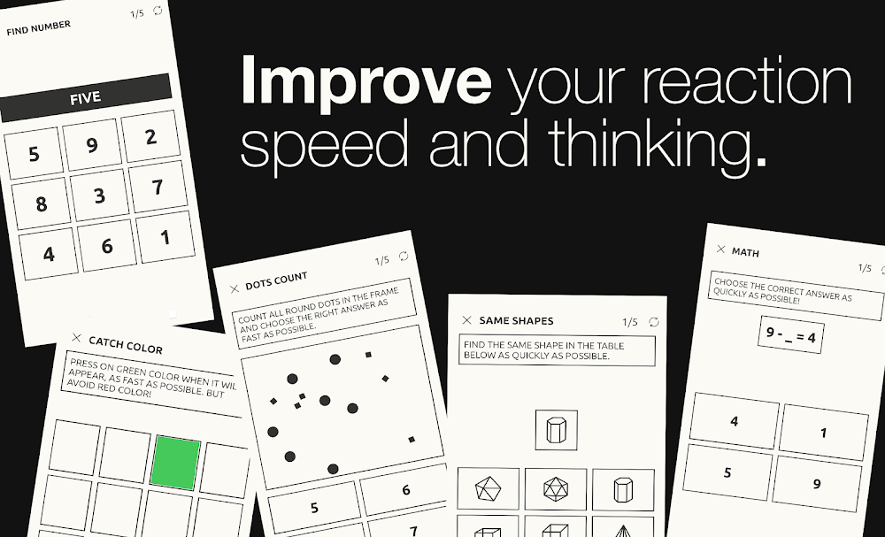 You will play more than 30 mini-games as part of your training for faster reaction times when participating in the Reaction training. It is possible, and many people do, to think of this application the same way you would think of a game. Completing Schulte table exercises and practicing speed math problems are great ways to improve your memory. You can also test their effectiveness by putting your sonic reaction skills to the test. You can also work on fast counting, moving pictures by level, and eye memory. You can also play your memory with mini-games that begin with the smallest details.