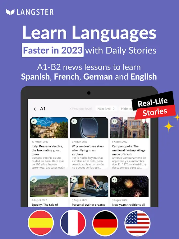 Readle (ex—Langster) Languages ​​will be a tool to support learning foreign languages ​​through impressive real-life stories. The application is increasingly modern and updated with many new features to meet the needs of users. Providing real-life contexts and having more ways to handle situations in new languages ​​will help you better understand the language you choose.