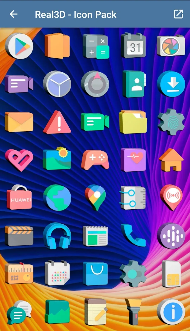 The icon pack with gentle pastel colors will be released by Real3D – Icon Pack. Users can own a special icon pack that helps them create a new, extremely sophisticated interface. 3D icon templates bring depth to the device interface. The application allows users to request icon updates at any time.