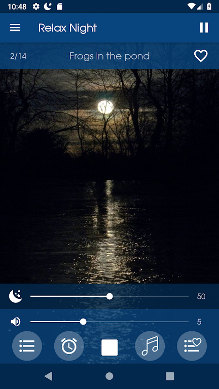 Relax Night boasts an impressive collection of over 15 perfectly looped sounds. From the classic Brahms’ Lullaby accompanied by crickets to the soothing waves of a calm ocean at night, there’s a track for every mood. Ever wanted to camp by a beach without the hassle of sand everywhere? Try the “Campfire on the beach” sound. Or perhaps you’re more of a “Night in the woods” person? We don’t judge.