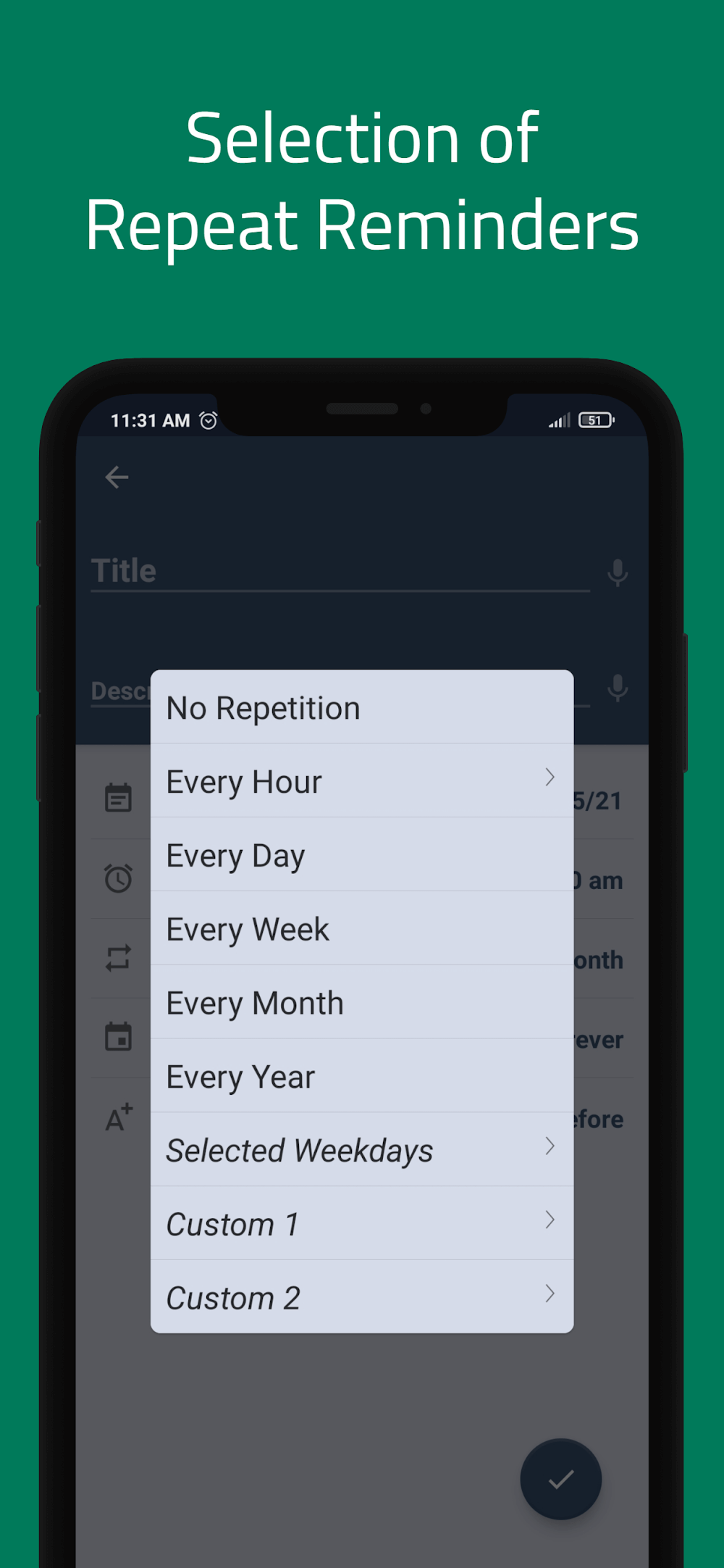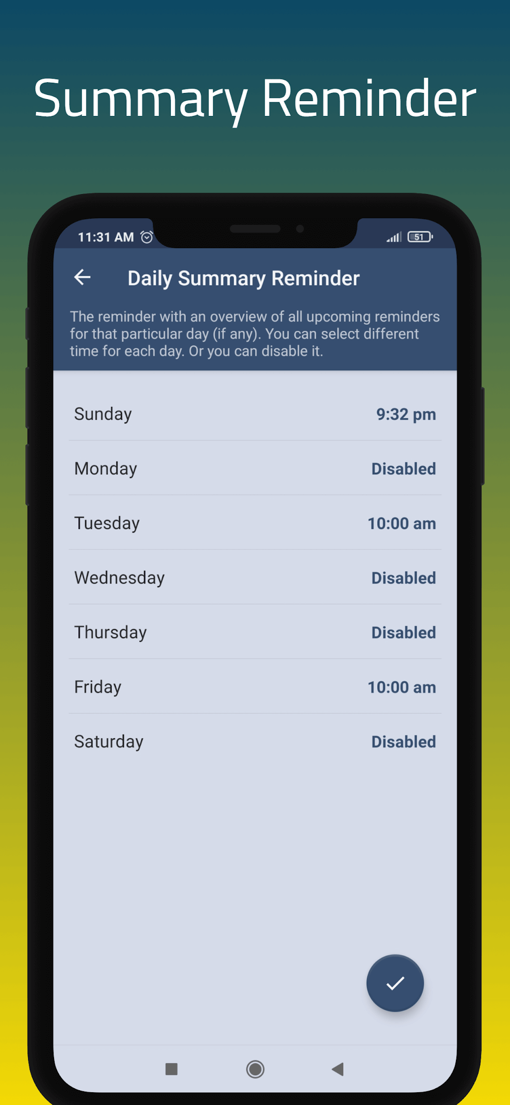 - Versatile Application: All reminders can be used in many ways based on your needs. If it is simply a food habit, the system will provide interesting suggestions.