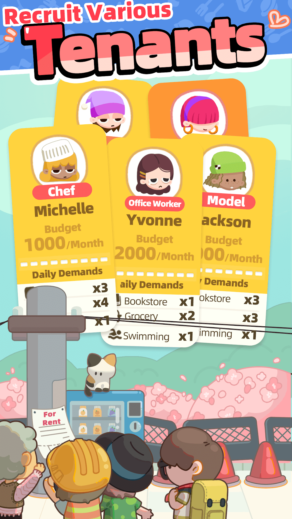 Rent Please is an idle-style game with a rental theme where players will manage a suite of rooms for rent and make money from it. They will find ways to make their apartments modern and fully equipped to attract more new tenants. In particular, each character in this game possesses certain needs that you must meet. The emotional aspect is also included as you are not just the landlord but also become a friend to them and give them advice. Therefore, a boarding house with positive emotions will continuously develop.