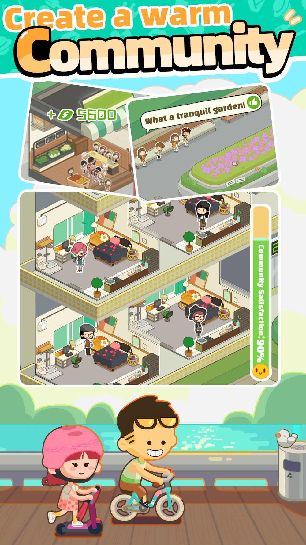 - Create your own space: As a landlord, you will renovate your property with interesting buildings and decorations.