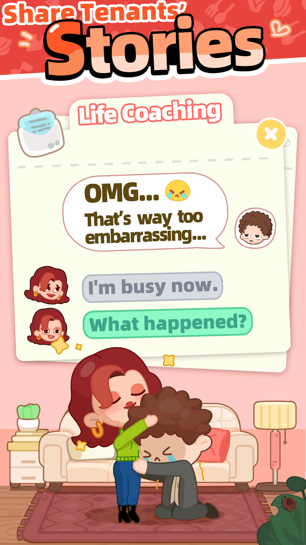 An interesting point that players realize is that the characters who come to rent the house are not just characters added to increase your money but also characters with needs and feelings. Specifically, if they need something, you must meet it to help them feel comfortable, and from there, service efficiency will be higher. At the same time, you and them not only have a landlord-tenant relationship but are sometimes also friends. In other words, the life problems they encounter can often be brought to you, and they will look to you for helpful advice. You just need to choose the advice that you feel is appropriate based on what has been prepared.