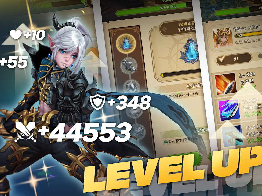 리벤저 사가 – 방치형 스토리 RPG belongs to the idle game genre; you can collect rewards or power-ups even when you are not playing the game. Each character has its own skills and powers, and you should collect as many different heroes as possible to fight against monsters with great power.