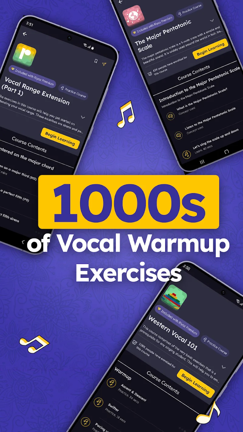Riyaz: Practice, Learn to Sing is an application that helps you improve your singing voice and practice your favorite songs. Our application helps you correct mistakes when singing to help you improve, and we have hundreds of copyrights from songs everywhere in the world, such as music from Western countries or India. Our application has made the singing dreams of more than 3,000,000 people come true.