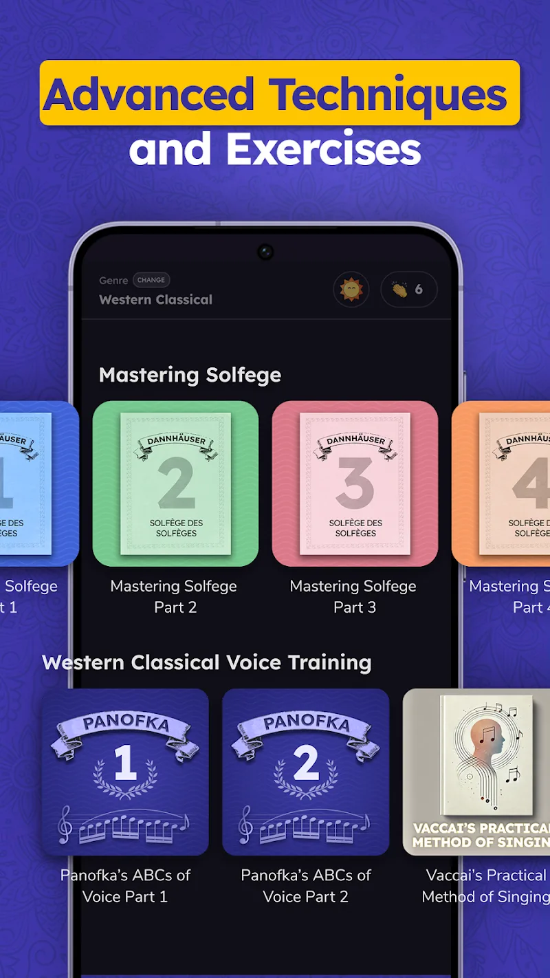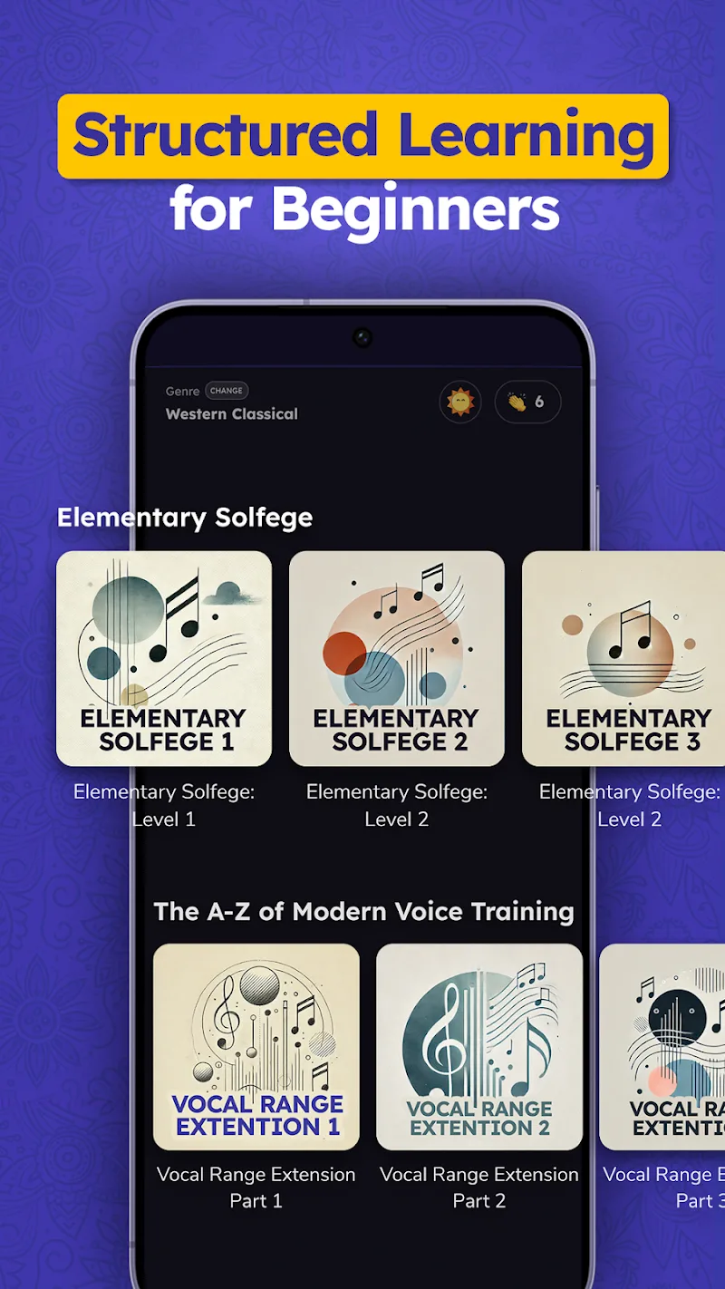 - Multi-style practice lessons: Our app also provides you with a variety of classical music, such as Western classical, Hindustani classical, and Carnatic, for your singing pleasure.