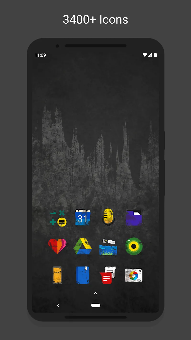 • Creative Visual Blend: The application creates 3,800 unique icons in the grunge icon pack. Users can completely change the device interface when applying this icon pack. The novel look is one of the outstanding points that the icon pack possesses.