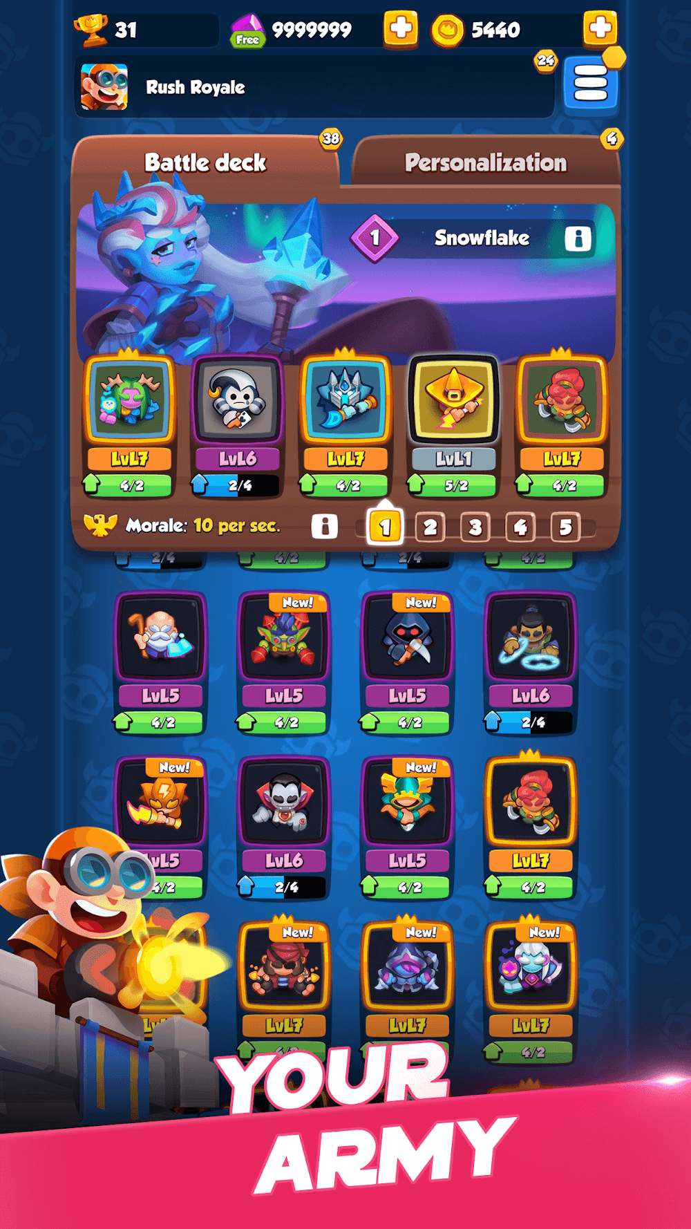 Rush Royale: Tower Defense TD is an exciting hero game with unique, colorful graphics, creating a comfortable entertainment space for all players. Here, you will show off your fighting abilities and become the most talented hero loved by everyone. Build majestic and large tower defenses to protect your base in the safest way. Hurry and join exciting PVP battles now!
