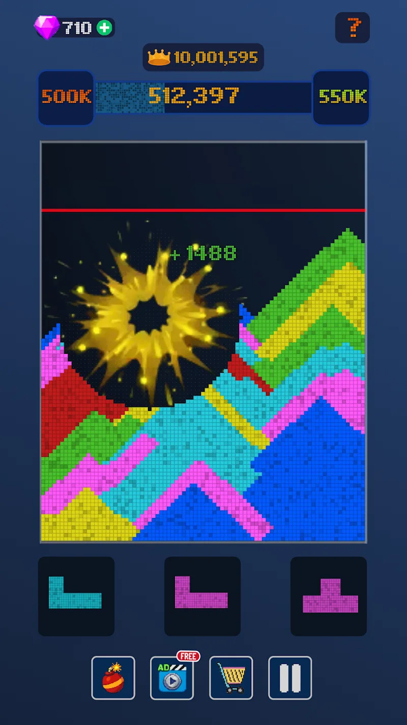 Because of the completely new and redesigned gameplay style, the game requires players to use a very special type of strategy. Players will need to carefully think about where the colorful tiles land so that when they break apart, they can solve the color puzzles. At the same time, the game also lets players enjoy the fun anywhere they like through the offline mode, without needing a complicated internet connection.