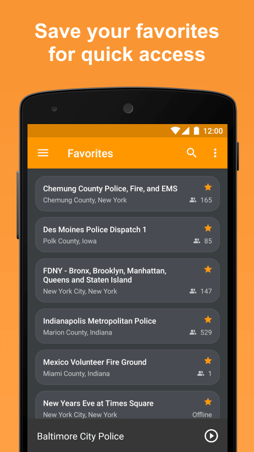 In addition, Scanner Radio Pro: Police/Fire allows users to select the scanner channels they are interested in and save them as favorites. When choosing a favorite channel, users can easily access and listen to calls quickly without searching through the available list. This helps users find information faster and easier than ever. And for the perfect interface, choose for yourself sleep mode or turn off the screen for the best experience.