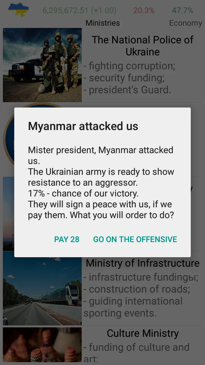 A new Premium version game has just been released of the game Simulator of Ukraine Premium, allowing players to participate in the game as the Supreme President of Ukraine. Players will make life-or-death decisions that directly affect the development or destruction of the entire country of Ukraine.