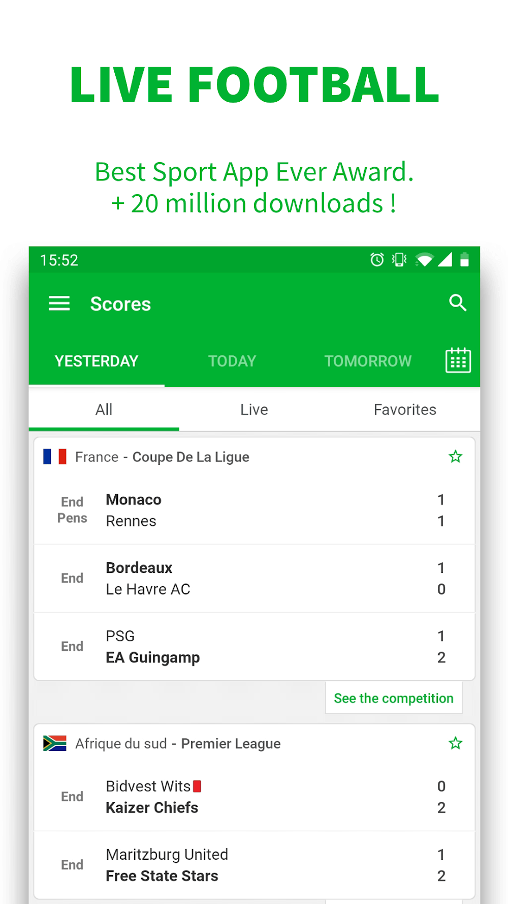 This app is comprehensive because it covers about a thousand international football championships. You can quickly check out your favorite leagues and clubs’ standings, schedules, and previous and upcoming results anytime! Everything is categorized in different ranges and tabs, ensuring you can search them up easily and even place reminders for incoming matches with distinct and loud notifications. That is a helpful asset within the app, helping everyone approach their sport easier.