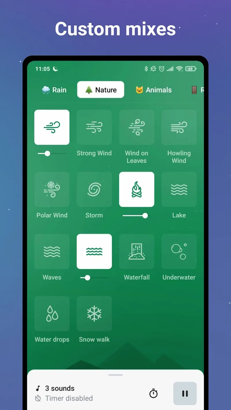 • Sound Categories Assortment: For numerous individuals, diverse sorts of sounds will bring diverse impacts. The application possesses assets related to rain, nature, creatures, and numerous other curiously choices.