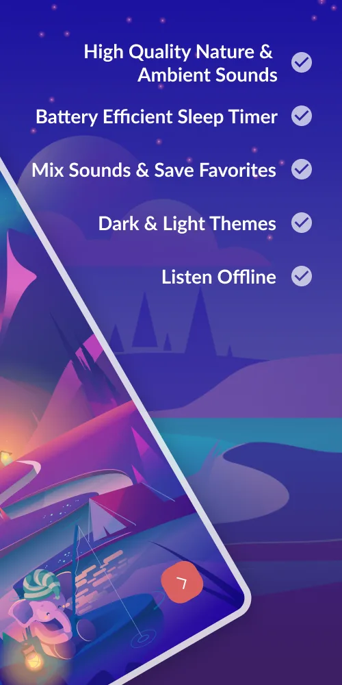 Sleepa: Relaxing sounds, Sleep provides you with different sounds so you can improve your sleep effectively. Maybe you are anxious, your mind is not comfortable, you can choose these sounds to support. The new timer mode, reminder, or notification features are effective during your gameplay.