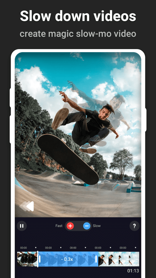 Slow Motion performs tasks that help users adjust the speed of any video. You can speed up the activities that will take place in this video. Besides, you can also slow down the actions. The system shares specific editing tools in a horizontally scrolling list. Users can both edit and review the entire content made. We will support users so that they can save impressive videos with the best quality.