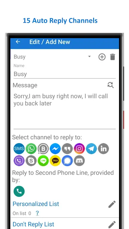 - Versatile Text Responses: The application allows each person to create replies for driving, sleeping, or meetings. These events often have special features, and polite messages can please the person opposite.