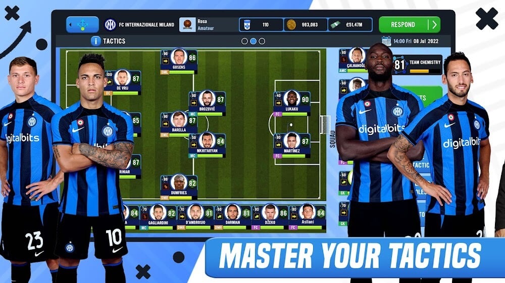 - New strategies: Your new strategies will be visible in the match because you’re changing the regulations, reorganizing the team, and replacing injured players.
