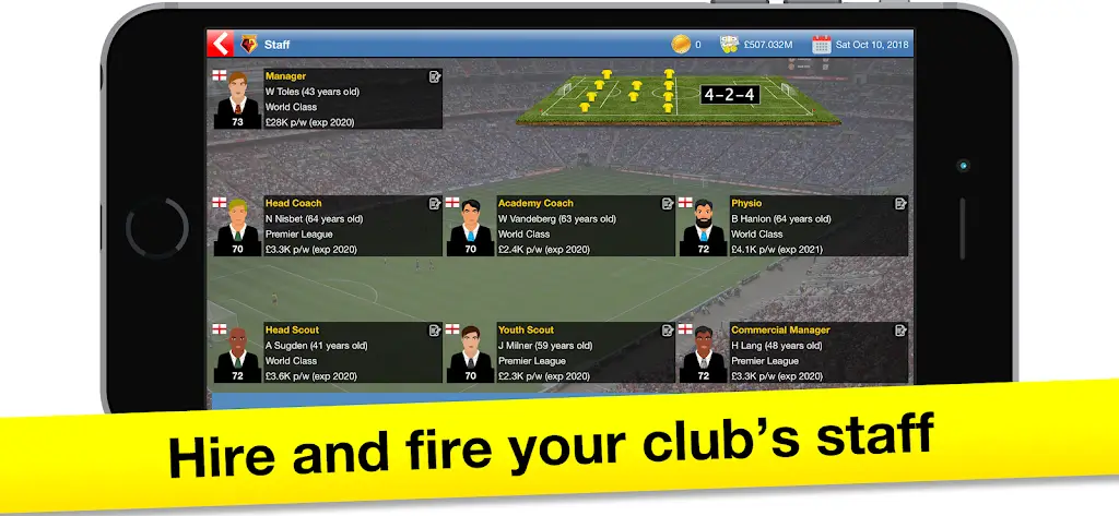 Behind every successful soccer club is an army of professionals working tirelessly off the pitch. And in Soccer Tycoon, you’ve got a full suite of them. From the tactical genius of your Manager to the eagle-eyed Youth Scout, each contributes to your club’s journey to the top. Manage them wisely and remember, it’s not just about the players!