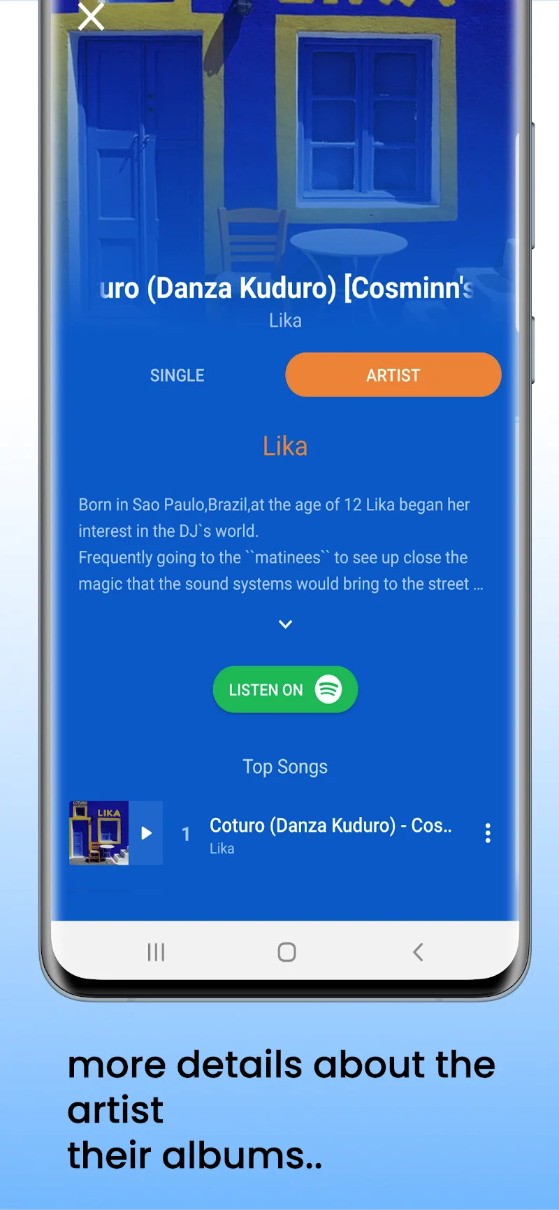 - Artist Exploration: The application will bring you artists around the world, from Asian artists to European artists. Bring you extremely rich information and famous songs that made their names so that you can know and understand more about those artists.