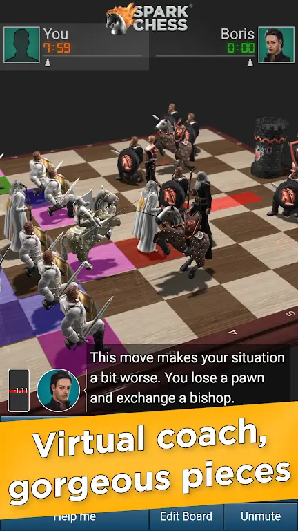 Are you looking to transform from a novice to a chess maestro? You’ve knocked on the right castle door. With over 30 interactive lessons, SparkChess Pro invites you to delve into the depths of chess strategy and tactics. Moreover, you can analyze famous historical games, practice standard openings and their variations, and even challenge yourself with over 70 chess puzzles. It’s like having a virtual chess coach who’s also your friendly mentor!