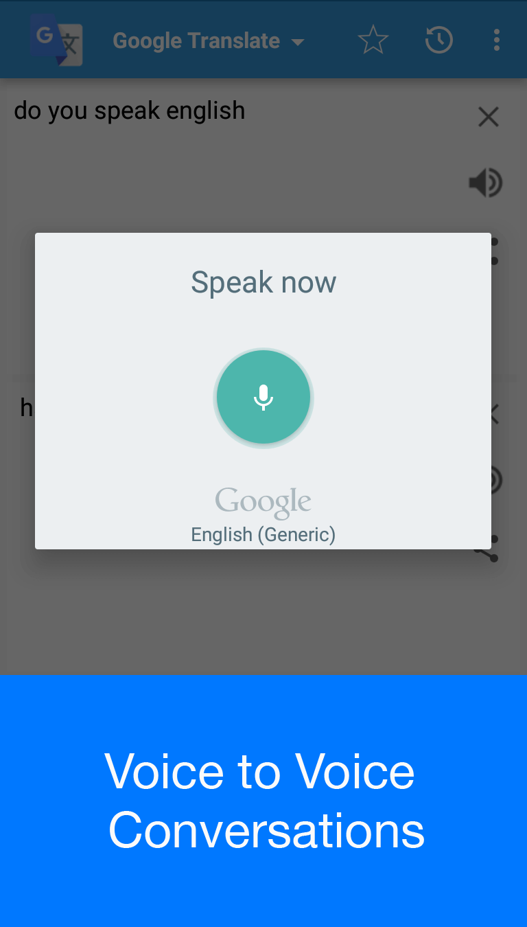 Users can use the keyboard to enter characters into the normal list box and translate to produce results for translation applications. But the highlight of Speak to Voice Translator that differentiates it from other translation applications is the ability to receive text by voice. This application integrates an extremely stable and clear sound processing system that makes recorded sentences with extremely high accuracy. Just click the start recording icon and say anything into the microphone on your device, and the app will automatically record the words for the language you are speaking correctly. Then it will automatically translate your sentence into another sentence with the same meaning in the language you choose for translation results.