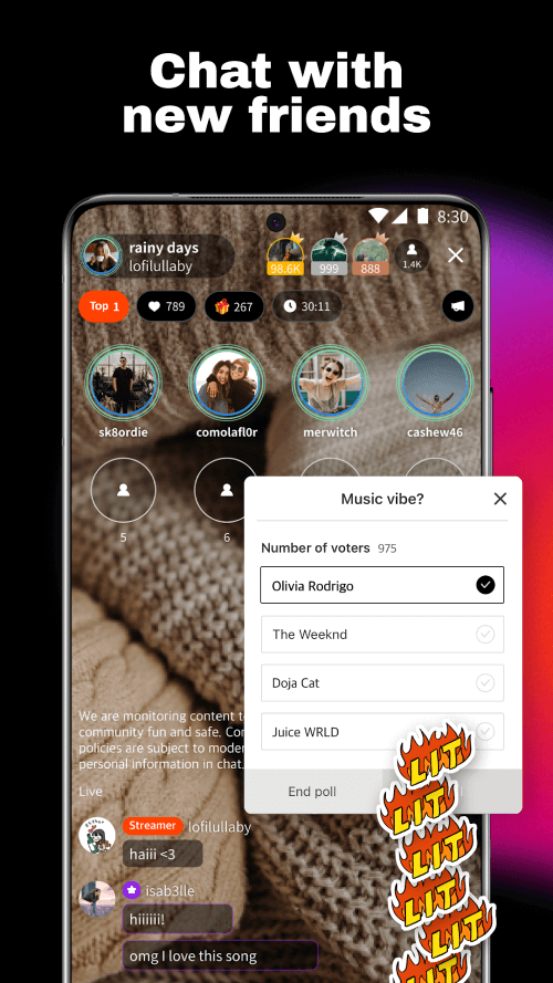 Spoon allows you to converse with a large group of people while live streaming and sharing interesting content with them all simultaneously. Daily, you will be able to meet many new people and exchange a great deal of information and anecdotes with them. Furthermore, you can get people to listen to your words by making the content as unique and novel as possible. You can also create a poll for the listeners, making it much easier for them to participate in the discussion. You can also listen in on conversations between various celebrities.