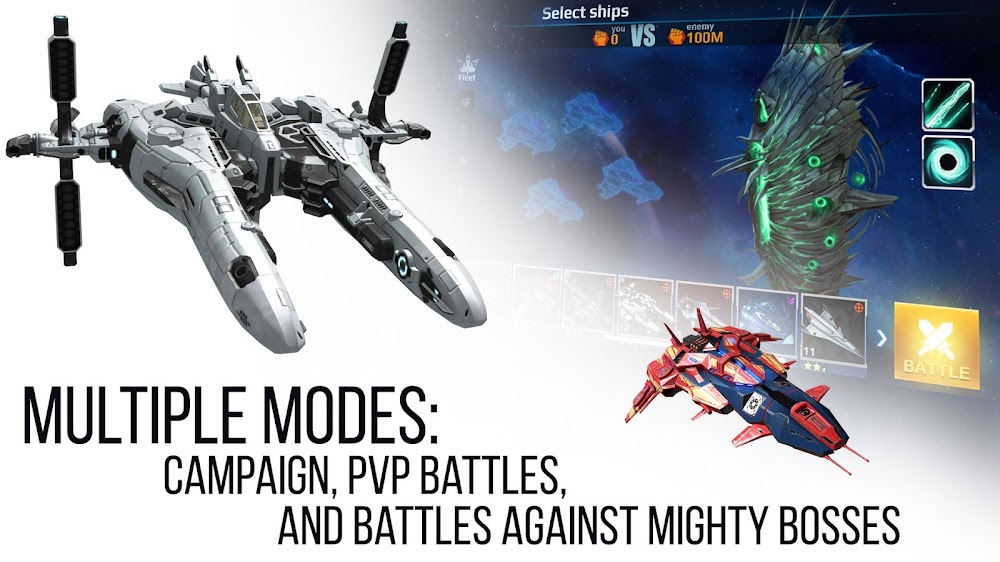 Accumulate more than fifty distinct starships, which may be upgraded using blueprints, one-of-a-kind modules, and loot obtained during combat. Make your choice of vessel for your journey through the cosmos. The game has numerous options for your advancement in your career, and your armada can gain more powerful boosts if you know how to spend the resource effectively. The game has more features to ensure your progression is equal to other fleets and make your prowess thrive to new heights.