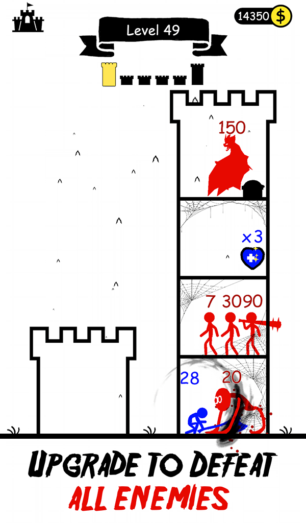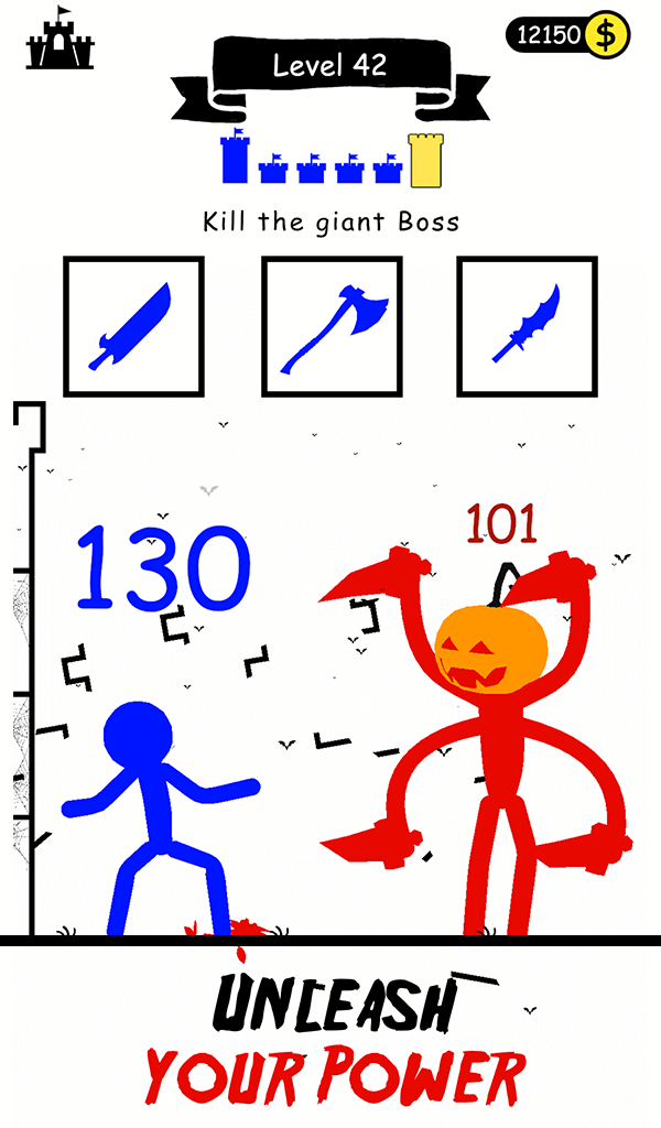 Players will start with simple weapons provided by Stick Hero. After gaining the advantage in the arena, you can upgrade your weapons to face greater challenges. Your opponents will be divided by rank. Warriors with small numbers will be weak. You can deploy the right move strategy to qualify to defeat all enemies. Your goal is to confront Wugy, Mommy, and Bunny in the last minutes. Therefore, you will have to role-play and become the stickman possessing the greatest ability. The loot will be used to upgrade combat weapons. You will succeed in the operation to save the princess from getting the game’s reward.
