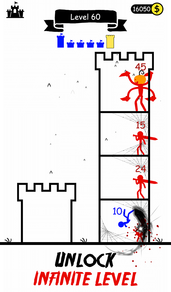 The system designs hundreds of levels in Stick Hero for players to conquer. The combination of classic brushstrokes creates a realistic story in this game. In addition, a series of effects are also applied to the stickman to make the space come alive. The sound of swords clashing will be clearly shown during combat. In addition, you can unlock new weapons on the list to use in difficult battles. If the player watches the trailer, they will get the power to double within seconds. You are allowed to undo to correct mistakes when you make a mistake during battle. The reward will be for the player who succeeds in the quest to defeat the boss and save the princess.