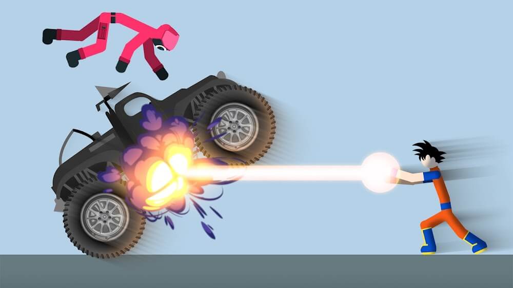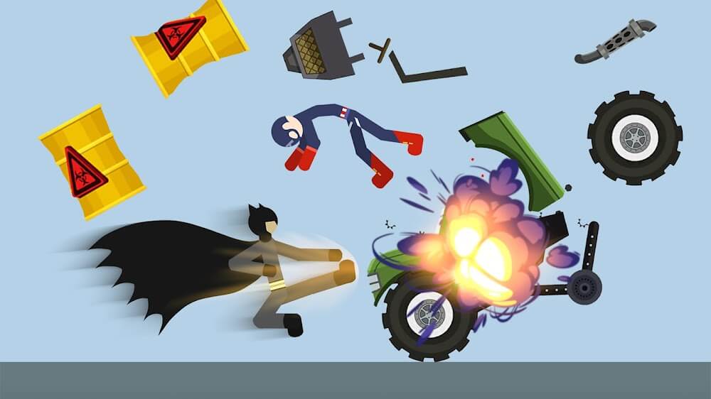 Amazing visual effects from the weapons and animations are fascinating and mesmerizing for a stickman ragdoll game. There are many ways to inflict harm on your adversary, such as weapons or vehicles. Whatever method you use, they are beautiful and unique, making this game more enjoyable, and you can do more creatively. Besides, new weapons and vehicles will be updated regularly, giving players more joy as they have new ideas for their tasks.