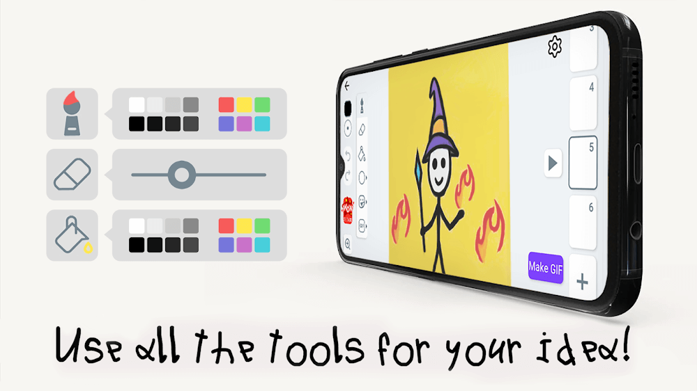 Because the app wants you to be creative, it has given you special tools to help you. With these tools, your drawings will be more unique, and the lines will stand out more. You can change the character’s color using the circle and the frames. These built-in features will help you make impressive animated models, which is the application’s strength.