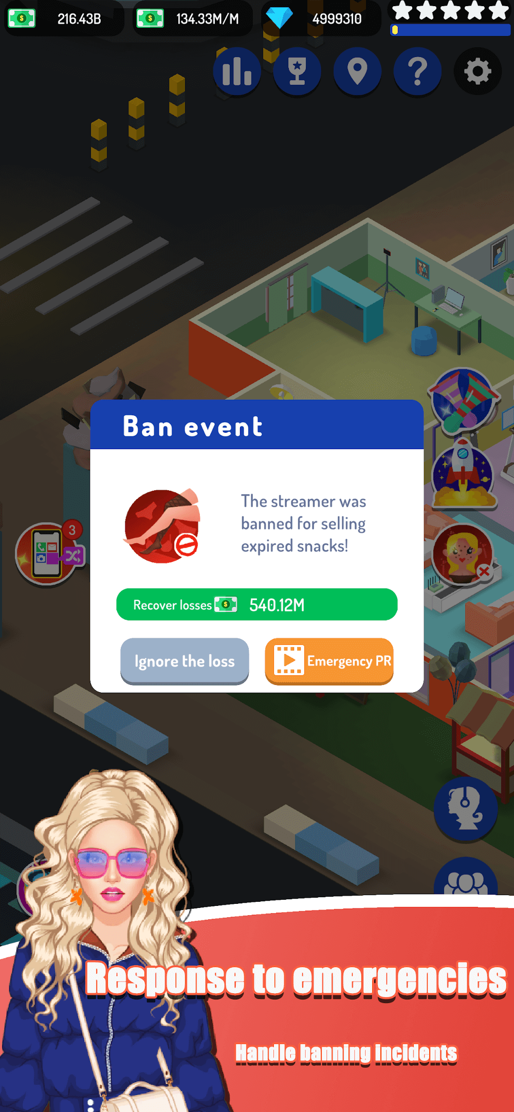 Besides the appearance and beauty of the streamer, players must devise new strategies and content to lure in more viewers and improve revenue. The game features numerous options for content-making, but it is complex, and you must research various elements to decide on the upcoming content. That will help you put up an excellent quality stream, and you can connect with other sponsors to advertise and earn more money. With the content-making feature, you will always have more options to make the streamer more successful than ever.