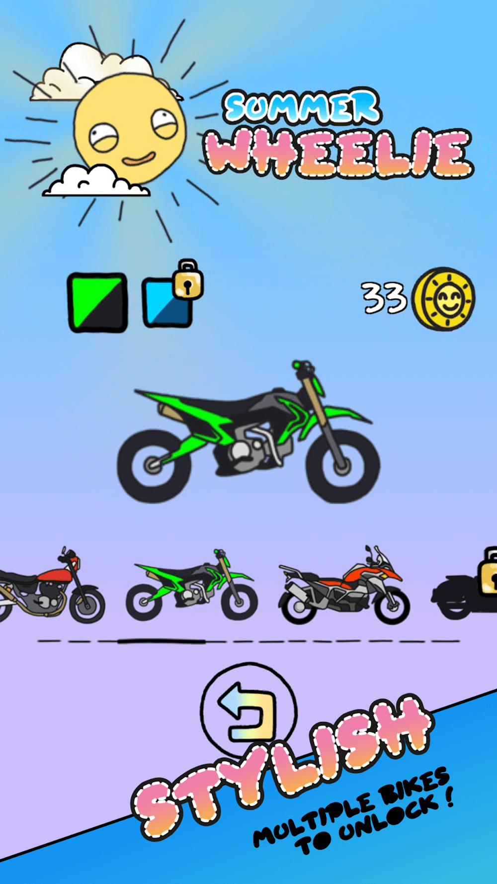 Summer Wheelie is a perfect choice if you want to show off your skills. Specifically, you will need to control the motorbike and perform skillful stunts. This will help them go a long way before having to stop due to current skill reasons.