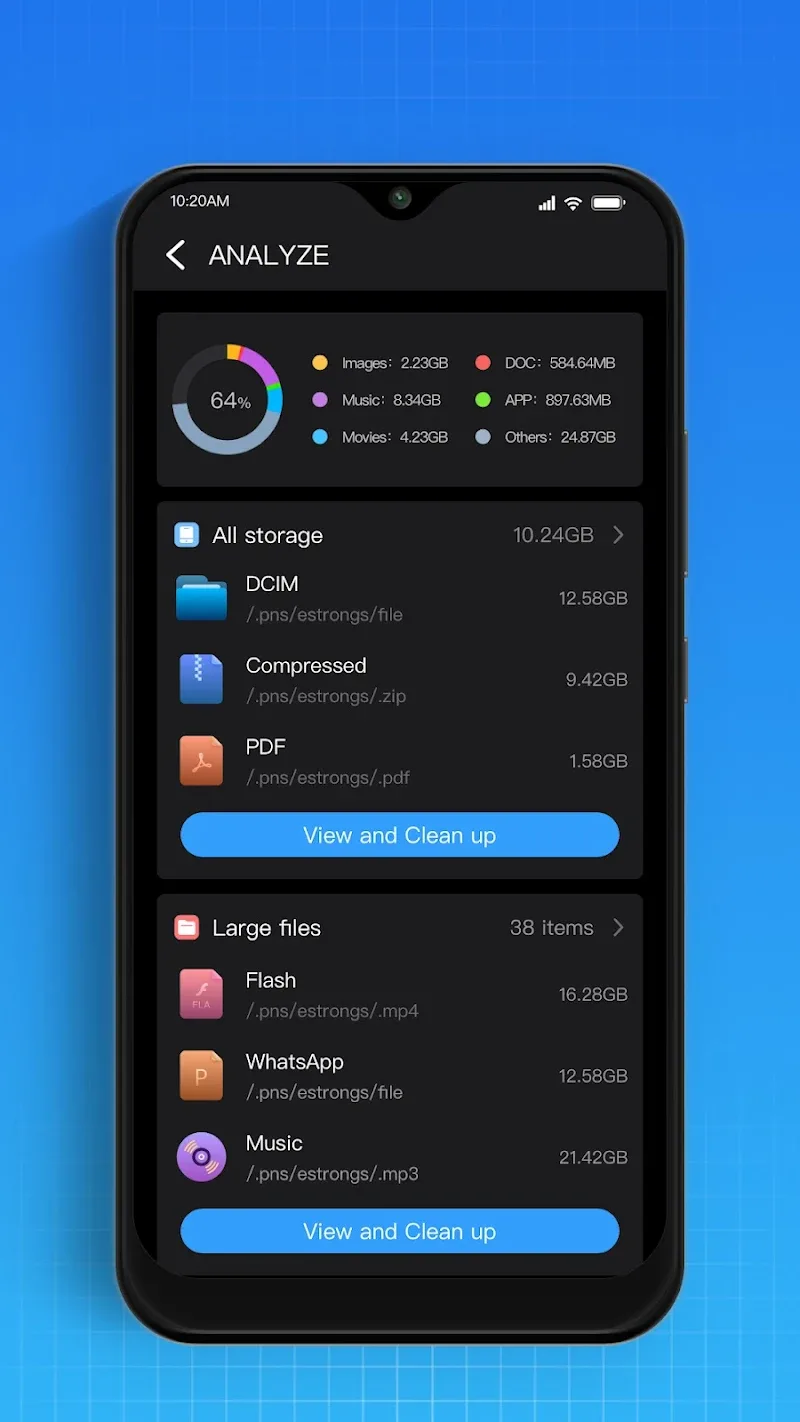 - One-Click Junk Removal: The app has a cleaning feature that lets users delete junk files in just one click. This helps free up storage space easily and quickly, thus enhancing device performance.