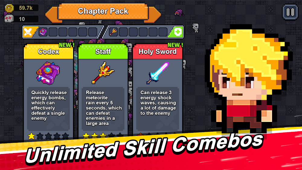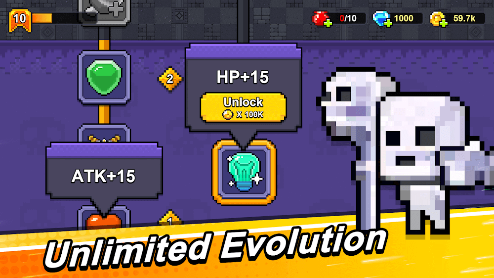 Character control is emphasized because the automatic attack system will be activated if the enemy approaches within attack range. At the same time, each enemy drops a certain amount of gold and experience to boost the character’s energy bar and unlock different skills. You have the right to choose to update current abilities or add a new effect to the attack. All create a great skill system and will change through the environments that the hero goes through. Before the match, you also need to pay attention to the basic stats and weapons that are highly compatible with the character’s abilities.