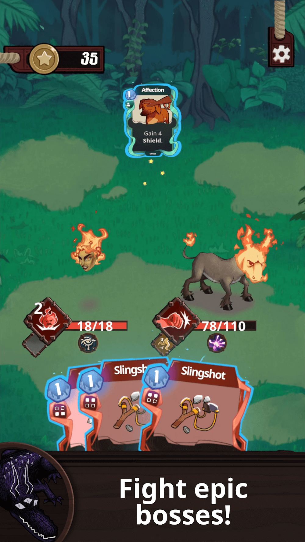 You will be battling bosses in a Brazilian folk universe, where you will have access to a shop where you can buy new cards and improve existing ones, an artifact where you can learn new skills, and a campfire where you can restore your health. You can also join the thrilling and dramatic storyline as an unknown creature takes Lorena’s little brother, and then she sets out on a journey through the woods and meets a variety of folk figures along the way.
