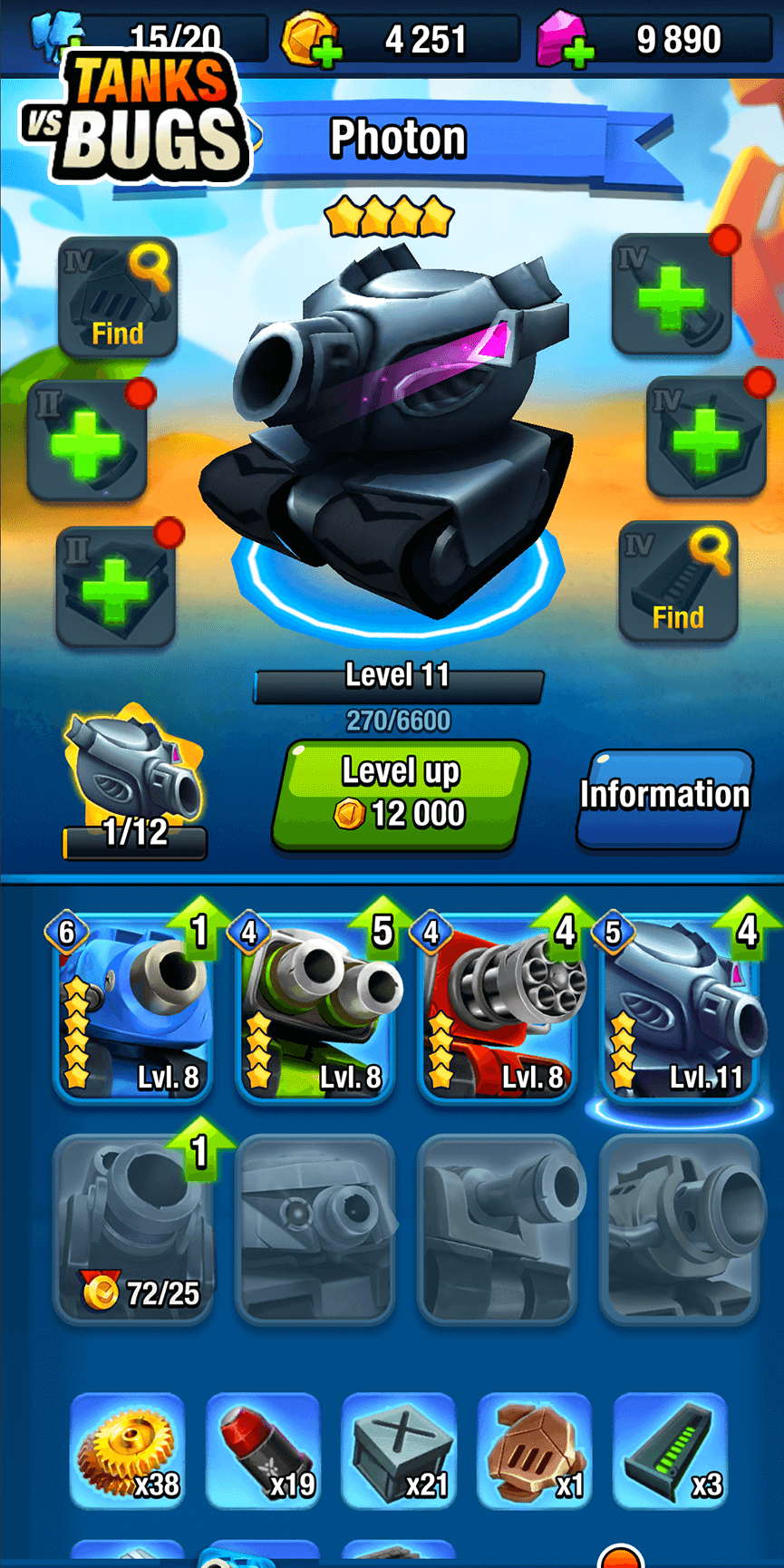 Criteria for a tank to be considered a war god in Tanks vs Bugs include strength indicators such as attack and defense. Each player will be free to build a huge tank collection, and you can refer to them and buy new ones based on recommendations from the store. Most of the cars here are sold at high prices and only receive incentives around the time of the event. Basic information such as the number of bullets fired per shot, strength, and protection are introduced first. Players will choose their favorite car and then apply great equipment to be able to own the perfect vehicle. You have more choices as the collection expands; keep fighting and collect more things you like.