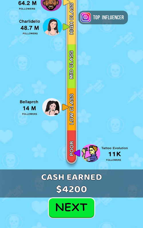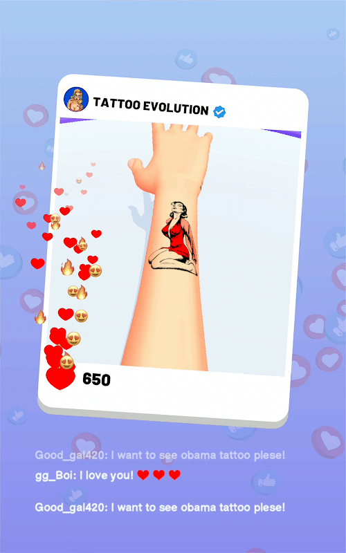 Players of Tattoo Evolution can advance along an Instagram influencer ladder. You can get followers and online clout by documenting your tattoo experience and sharing it with the world. You may become a household brand in the tattoo industry with hard work and determination. Tattoo Evolution guarantees you will never run out of options because of its large catalog of over 100 tattoos. You can make each tattoo your work of art by choosing the colors and adding your special touches. As you go through the game and run through the gates, your tattoos will level up and improve in appearance. Avoid having your tattoo’s potential stifled by cheap gates and spikes.