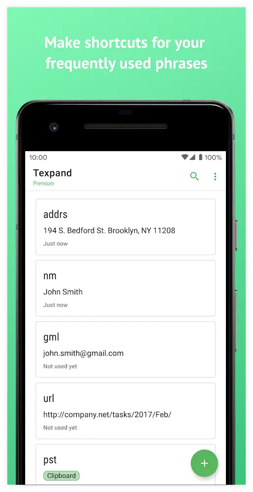 For a better user experience, Texpand makes a premium version. Here, you will not be limited to the number of shortcuts created. Familiar phrases are also presented as a list, and you can select them instead of creating shortcuts directly. All data belonging to the application will be backed up in Google Drive so that they are not lost. Users are also supported with other tasks so that the process of creating shortcuts does not take up too much of your time. When you want to shorten the operation on the application, you can also copy and paste it into the text input area to create a new shortcut.