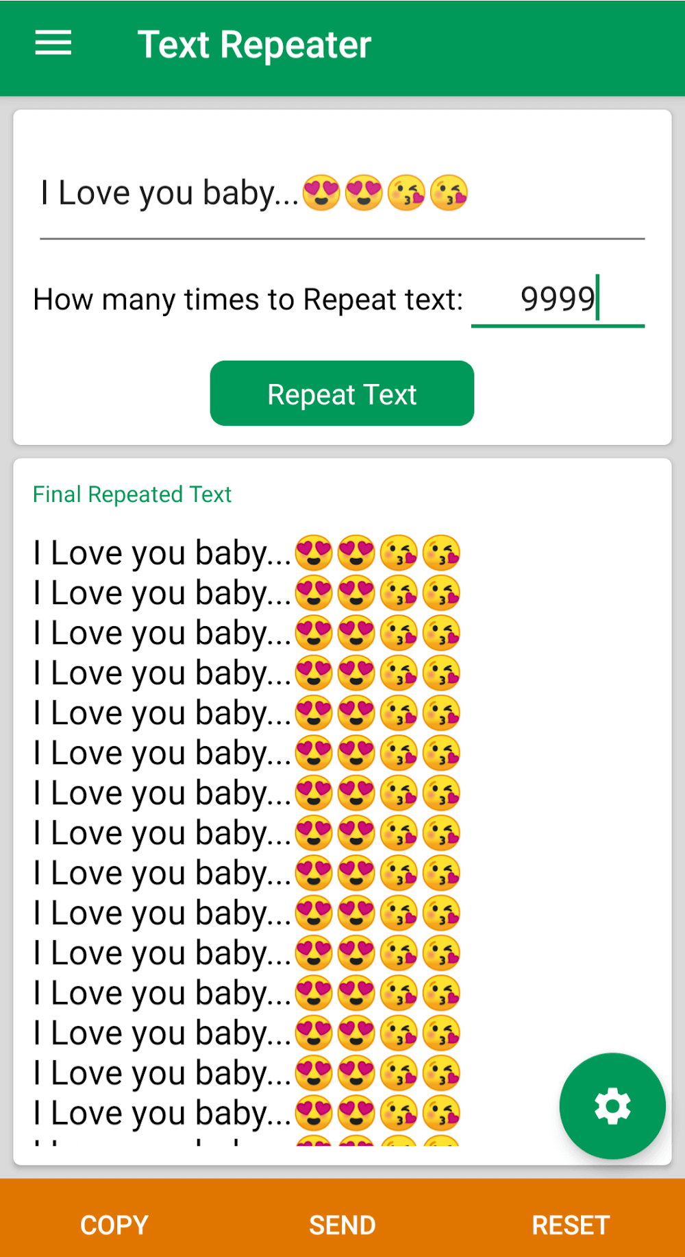 If you feel bored with having to repeat messages over and over again, Text Repeater: Repeat Text 10K will help you do that. With this application, you can create messages with the content you want and then send them as many times as you want and send them to anyone without having to do too many operations, giving you the most convenience when sending messages. Are you ready to use this utility?