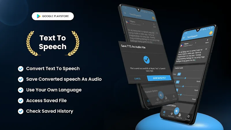 - Convert From Files: Users can convert text directly from any file. They can upload a file with text for the app to process. The final product is a complete audio file.