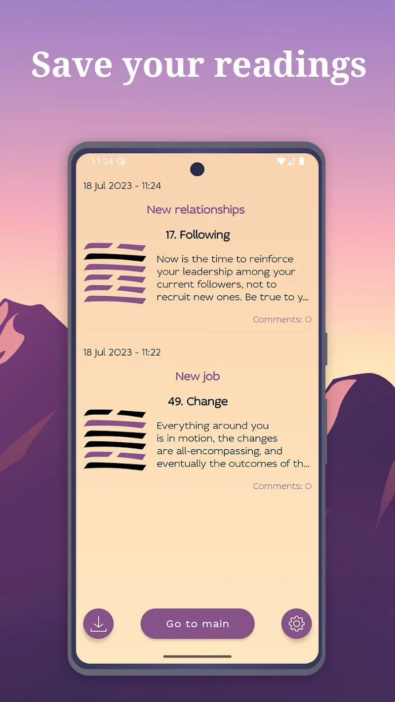 The Book of Changes not only provides insight, but also keeps the knowledge you gain in its memory. The ability to save your work is analogous to keeping a diary that doesn’t criticize your handwriting. You can check your previous predictions to see if the app’s predictions were accurate or if the universe decided to throw a curveball. It’s a chart for tracking your own development that doesn’t count vegetable consumption.