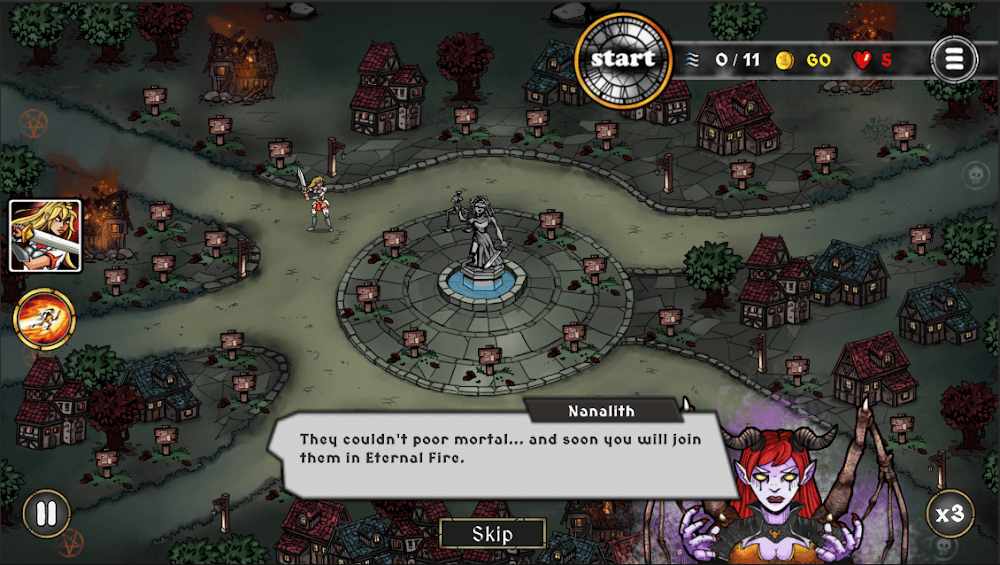 Your only opposition will come from relatively weak demons and demonic bosses with restricted access to hellish powers. They will appear to disrupt your work, and at this point, you will require the assistance of your heroes more than ever before. They come in different sizes and powers, and you can utilize various heroes to improve the battle effectiveness when placing them nearby affiliated towers.