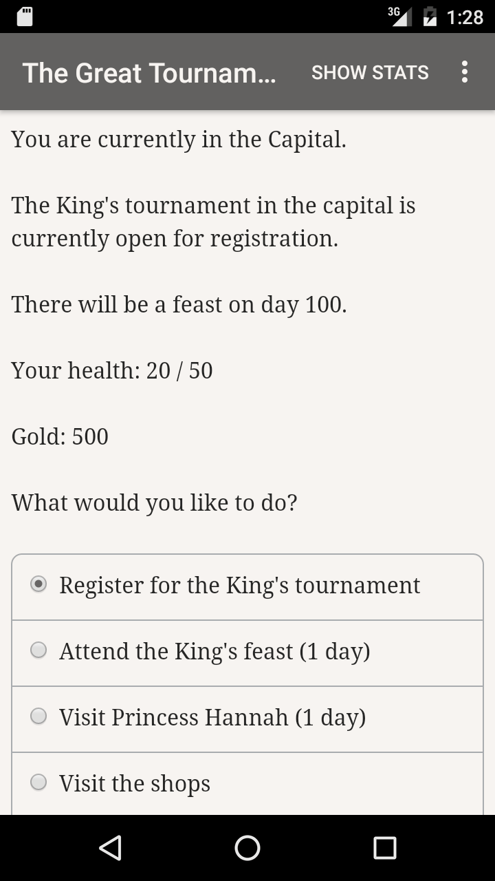 - The Great Tournament game contains a 180000 words fantasy novel by the famous Philip Kempton, where you can choose to control the story.