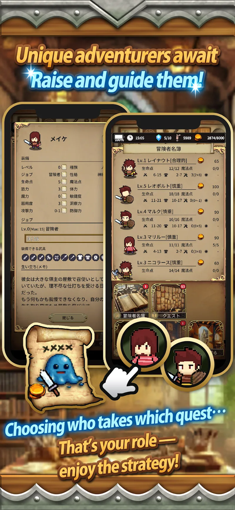 Acting as a village manager, players will have to recruit adventurers with different skills and levels to perform their missions. Each adventurer will have their own strengths, such as a powerful warrior, a skilled mage, or a nimble archer.