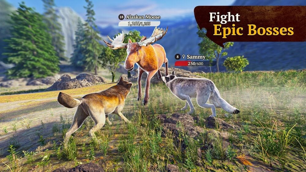 The final feature that the game can bring to its players is different game modes. After you have truly developed your character into a leader wolf, this is when the battles will begin. The alpha wolves will need to fight directly with each other to protect their herd and compete for the territory of the forest. Through that, the game also develops many different game modes, such as PvP, PvE, and Co-op so that you can fight.